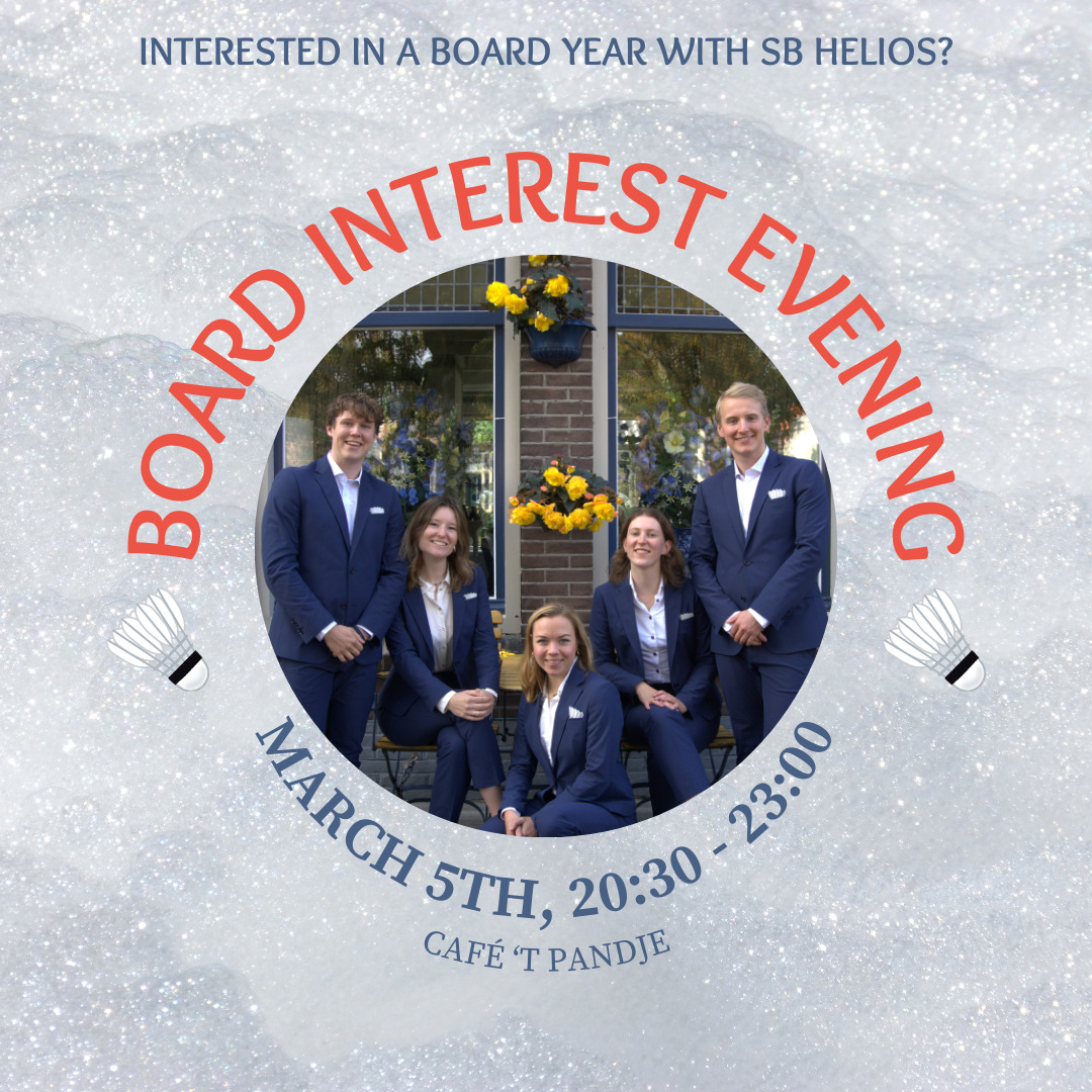 Lijkt het jou leuk om volgend jaar een bestuursjaar bij Helios te doen? Of wil je meer informatie over het doen van een bestuursjaar? Kom dan op 5 maart naar onze bestuursintresseborrel!